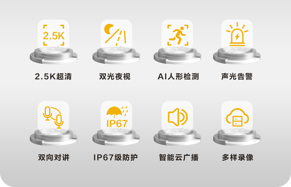 檢測到人形目標時,攝像機內置白光燈閃爍,並發出蜂鳴聲內置AI芯片,相比傳統設備識別效果更精準