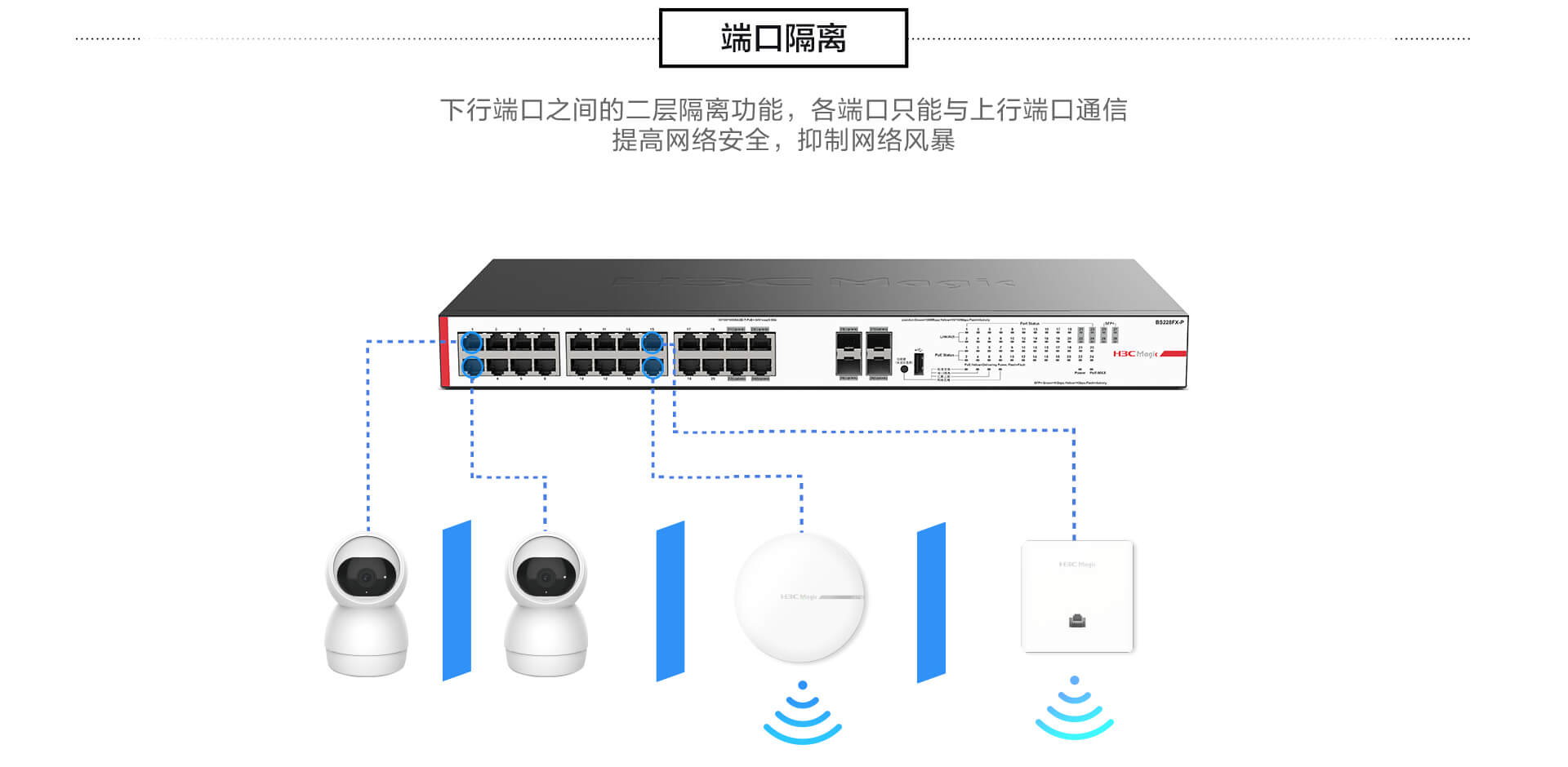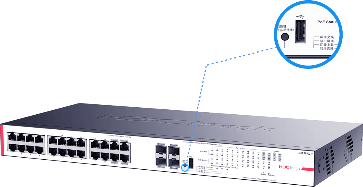 支持“標準交換、端口隔離、彙聚上聯、網絡克隆”四種工作模式