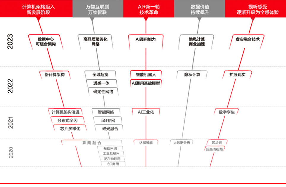 這些預測,來自技術積累與創新的水到渠成,凝結了ICT產業十年甚至更久遠時間尺度的積累,以及站在社會需求一線,凝練出對人類生活生產的洞見。 我們始終相信,未來的創新,需要向數據更靠近,向底層更深入;我們也相信,越是向基礎、向底層築基夯土,反而越能收獲一片浩瀚的星空。